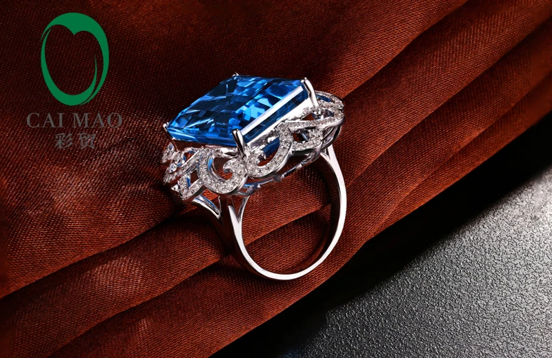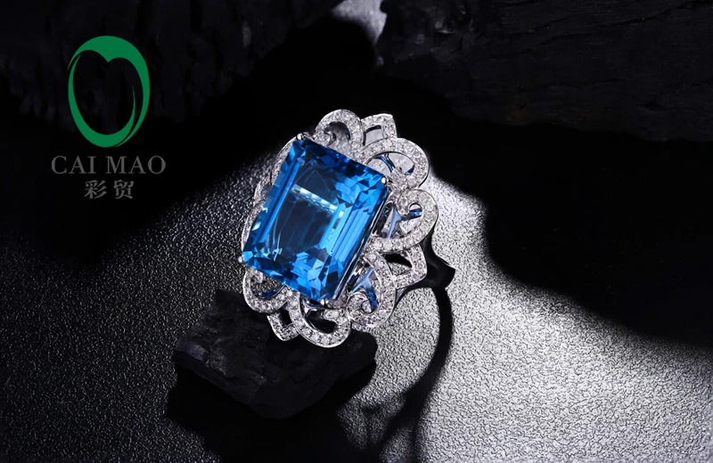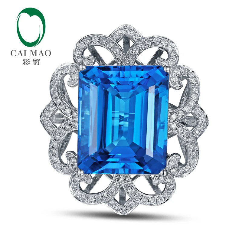 Real 18K White Gold 22.68ct Emerald Flawless IF Topaz Pave Set Diamond Engagement Ring