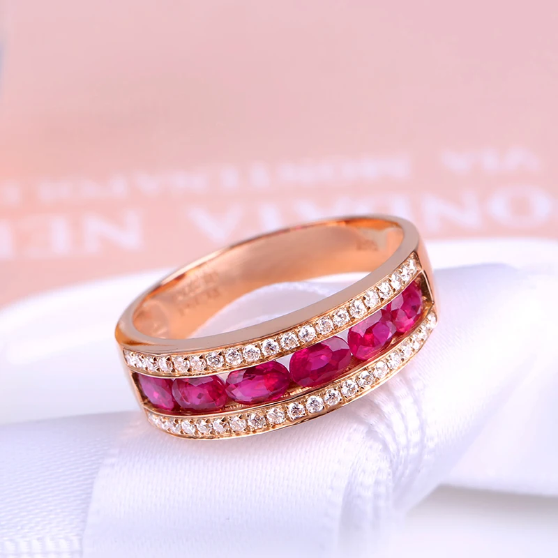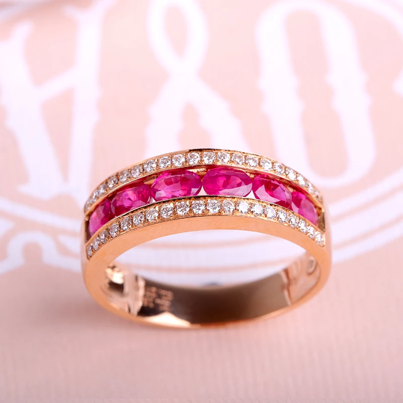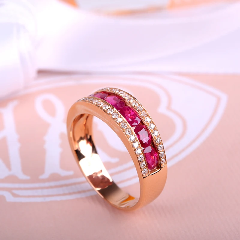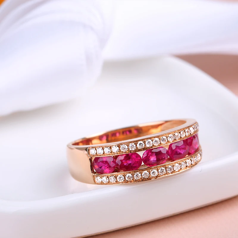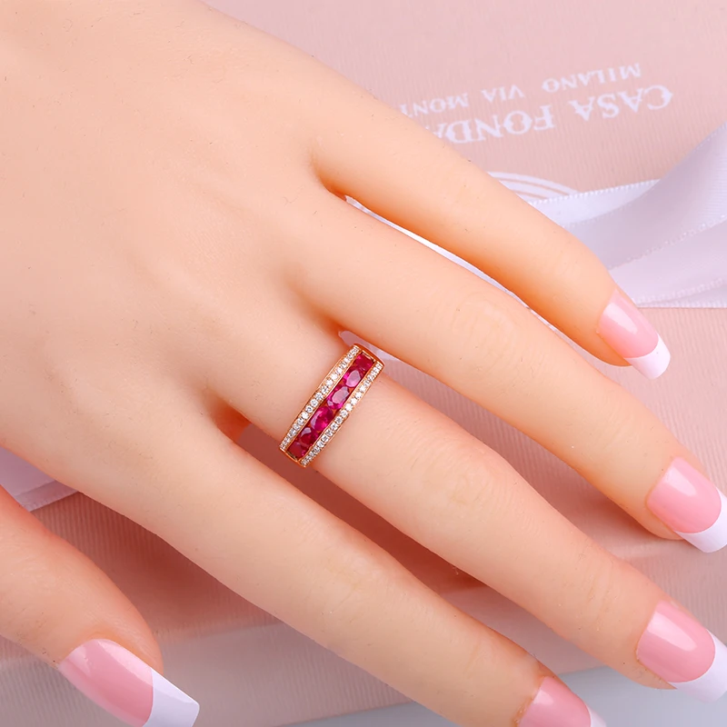 Classic Luxury Wedding Band Rings for Women 18K Rose Gold Pigeon Blood Ruby Female Co Jewelry Bijoux Femme Wholesale