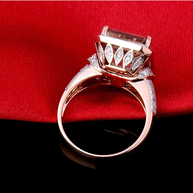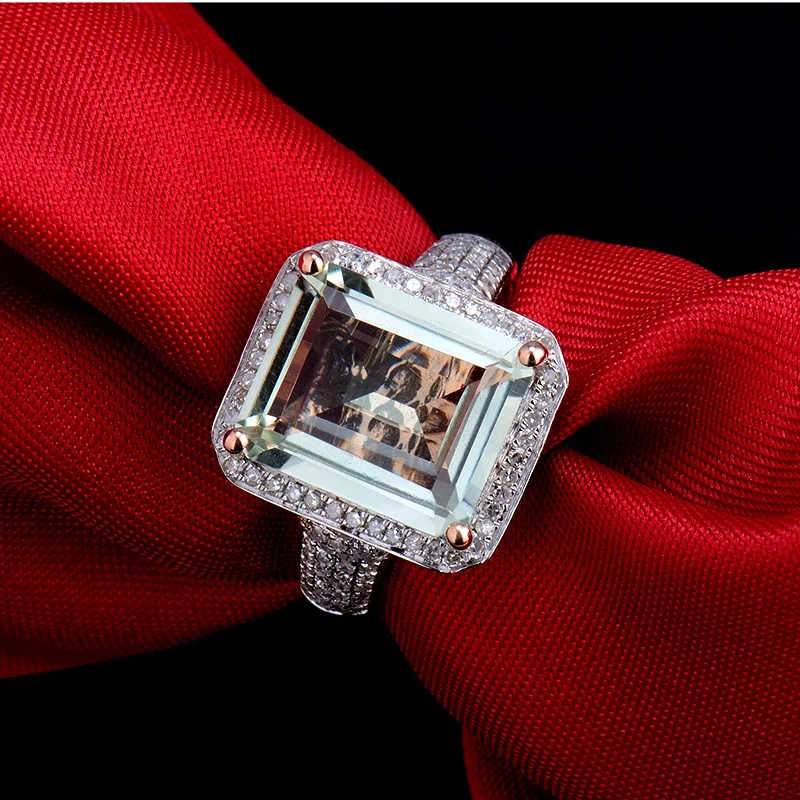Women Fine Jewelry Shining Emerald Cut 10x12mm Amethyst Diamond Engagement Rings 14K Rose Gold Women Jewelry G00326