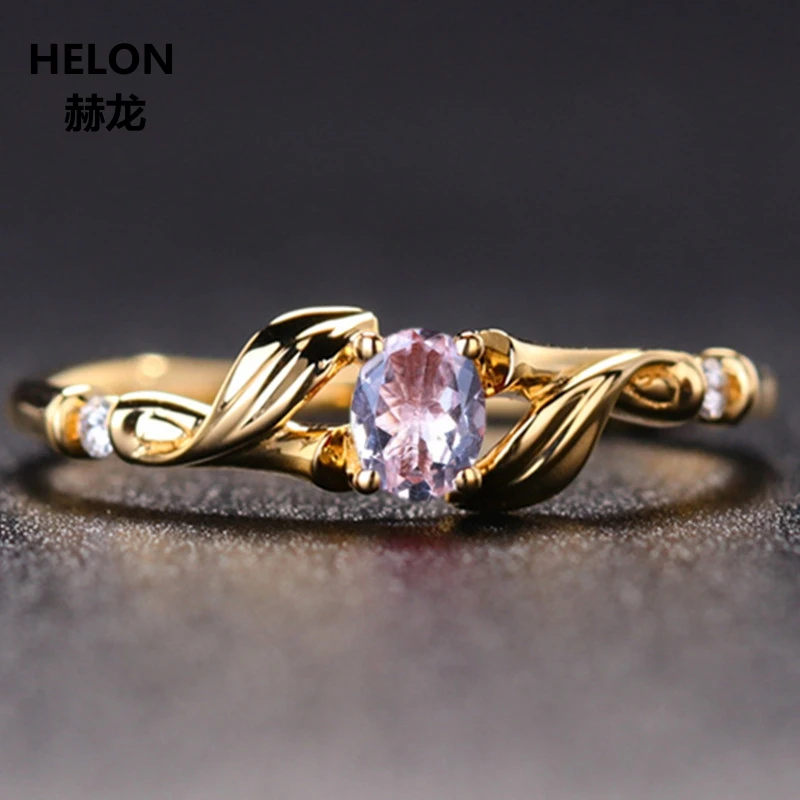 Solid 10k Yellow Gold Natural Diamonds Oval Cut Natural Morganite Engagement Ring Anniversary Wedding Ring for Women Party