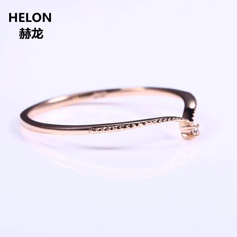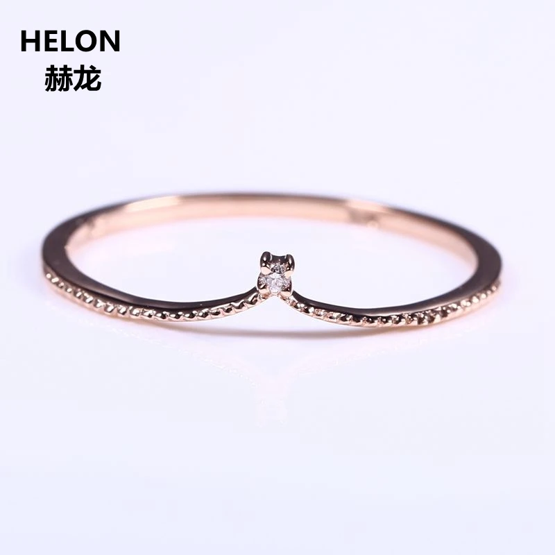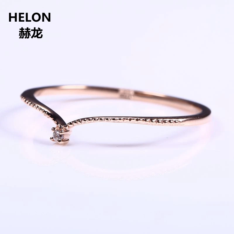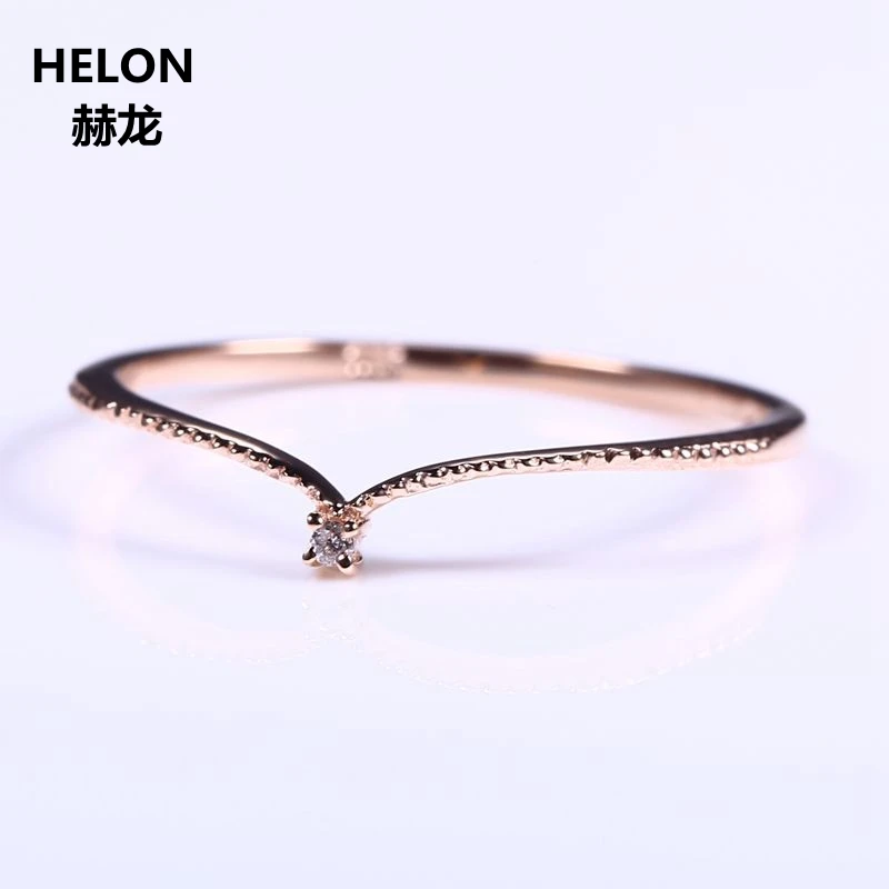 Solid 14k Rose Gold Natural Diamond Engagement Ring Women Wedding Band V Shape Fine Fine Jewelry Thin Cute Romantic