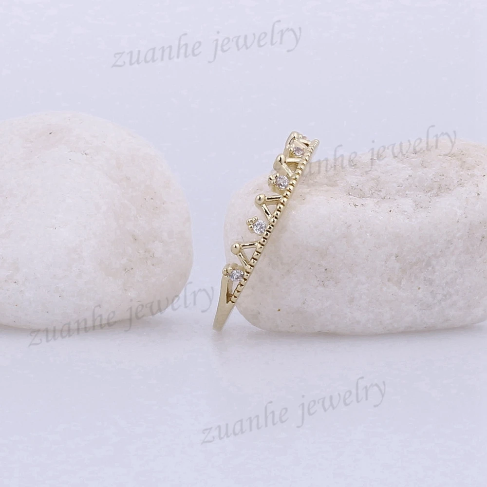 Solid 14k Yellow Gold Anniversary Wedding Band Natural DiamondD Crown Cute Engagement Ring