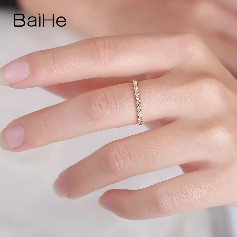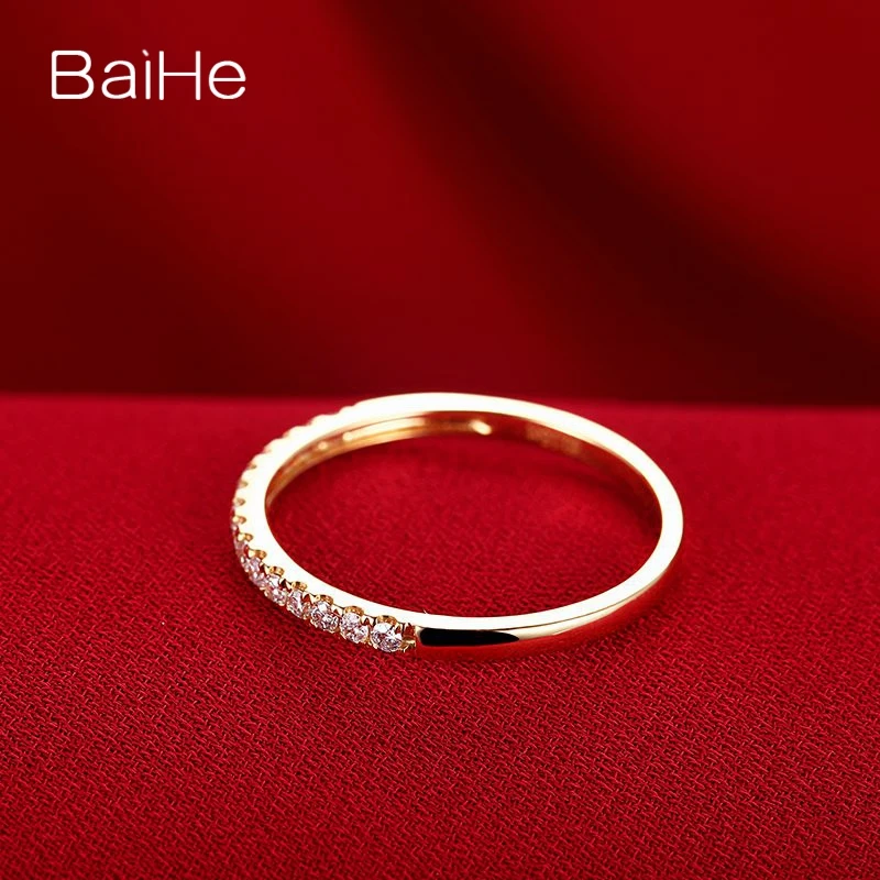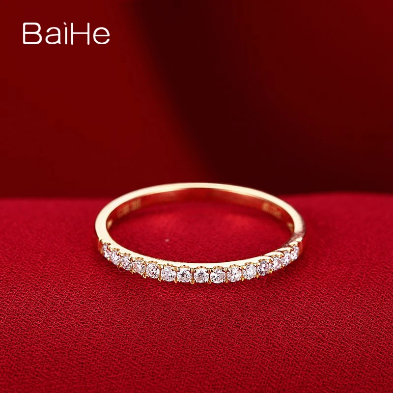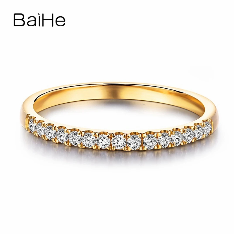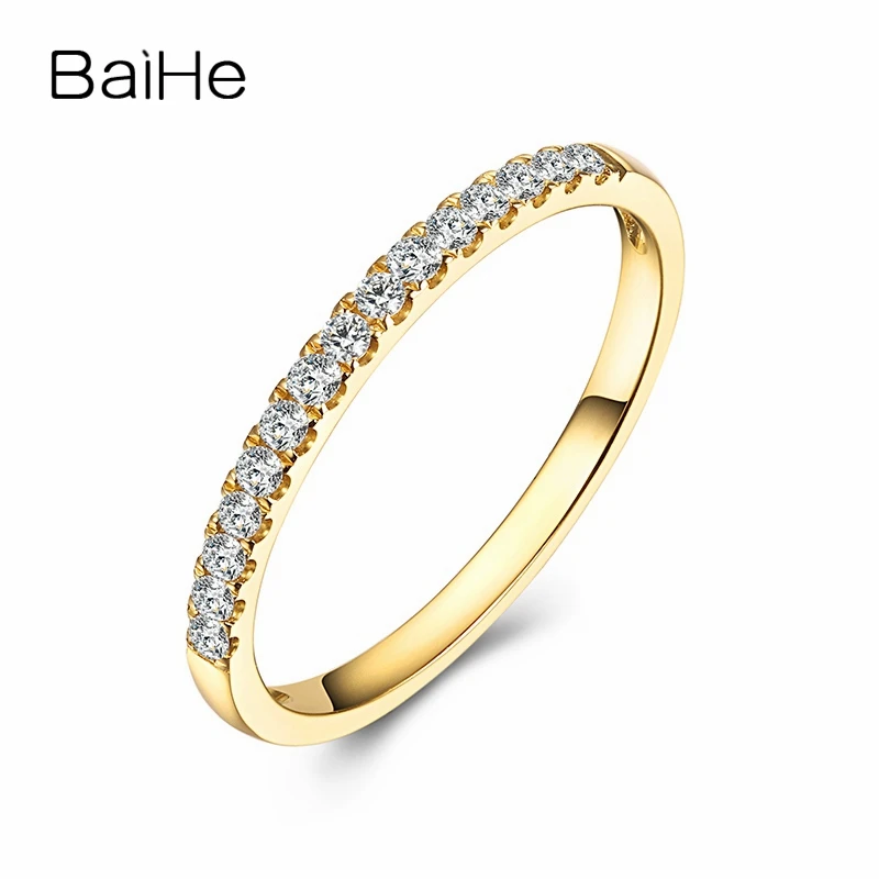 BAIHE Solid 14K Yellow Gold Engagement Wedding Ring Round Cut Diamond Eternity Anniversary Band