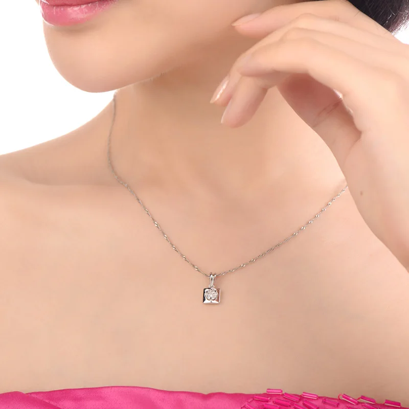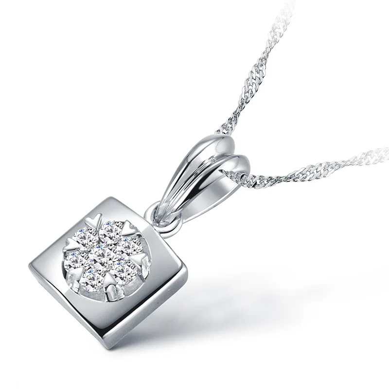 Solid 18K Gold Natural 0.06ct Diamond Pendant Necklace for Women - Free DHL Shipping