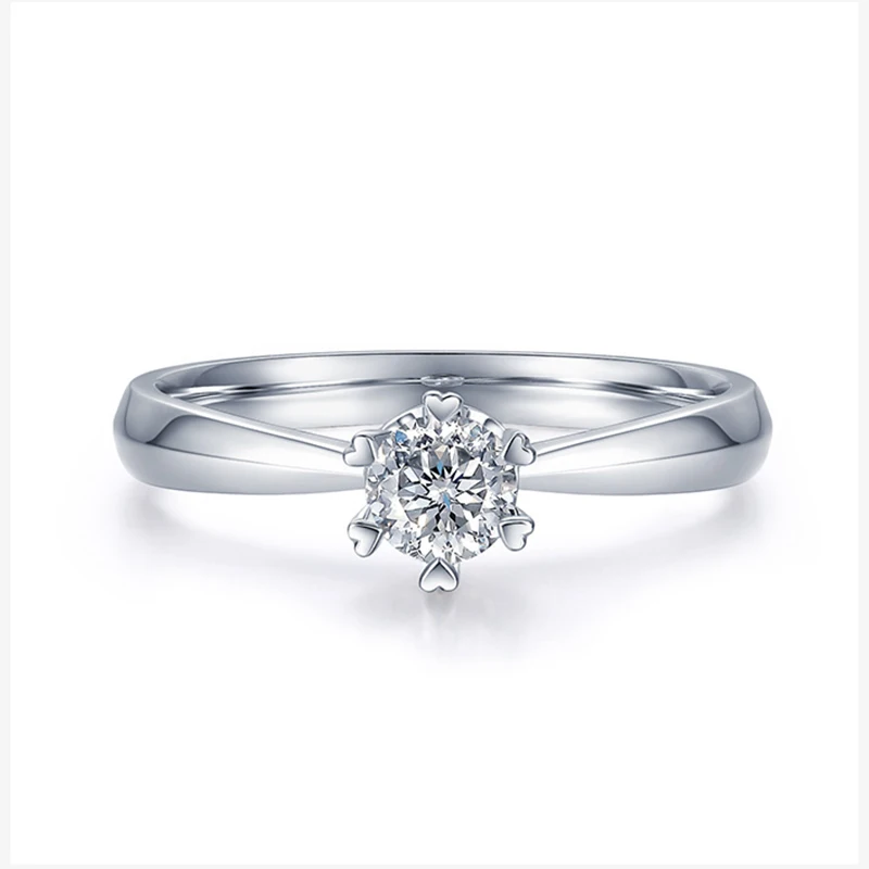 Solid 18K Gold Solitaire Natural Round Diamond Rings for Women Heart Wedding Engagement Jewelry Brilliance Valentines d gift