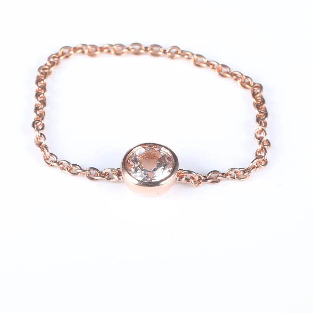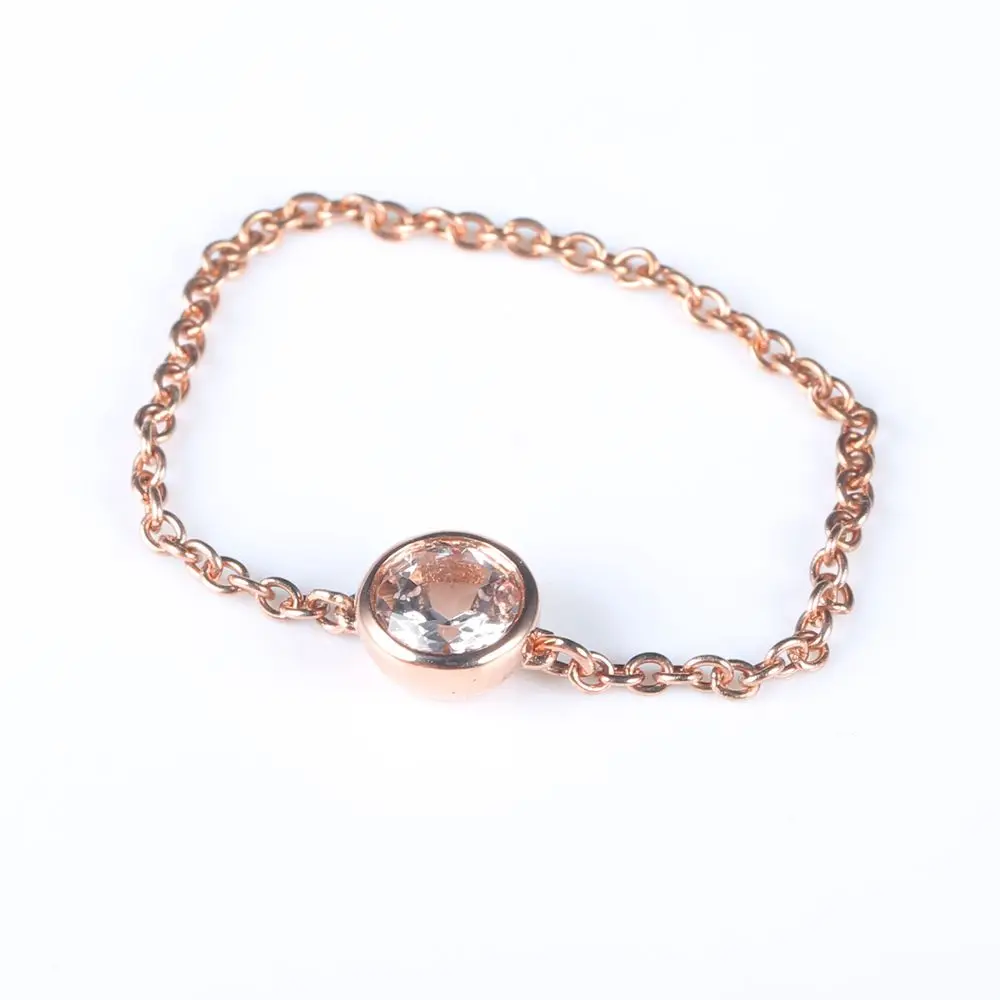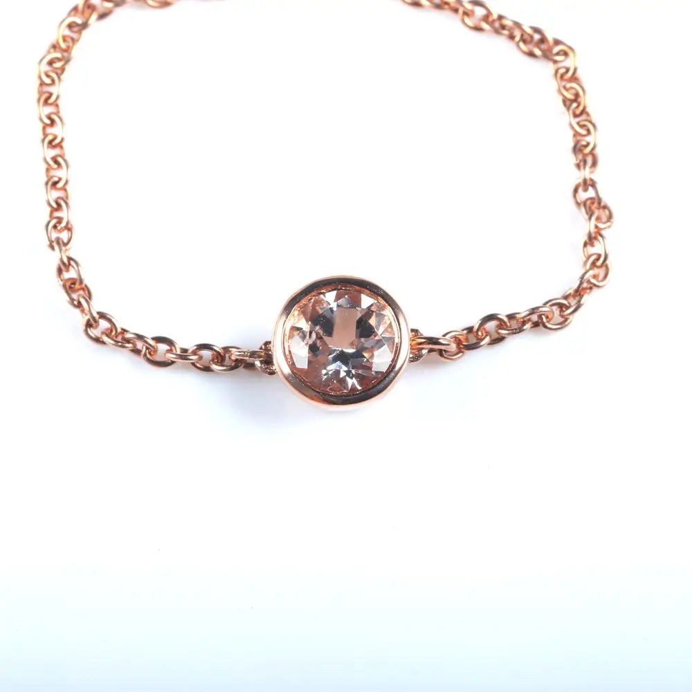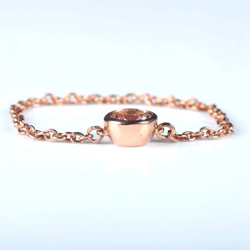 Solid 18k Rose Gold 1/4CT Natural Morganite Engagement Wedding Chain Women Ring Unique Fine Jewelry