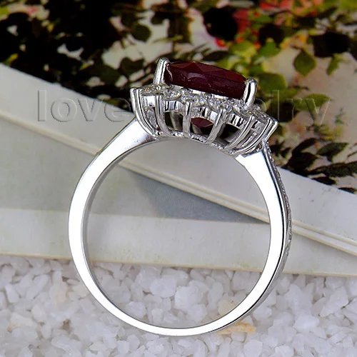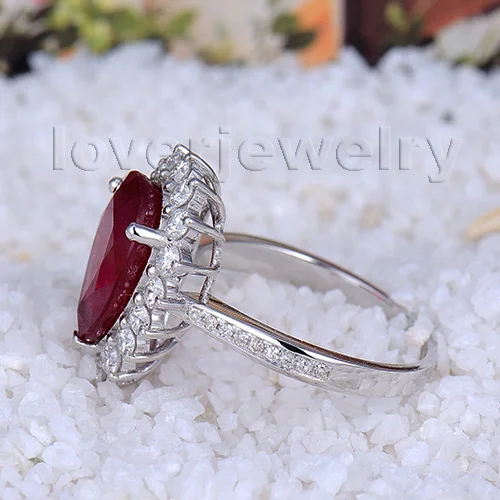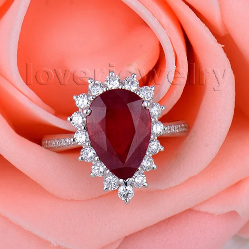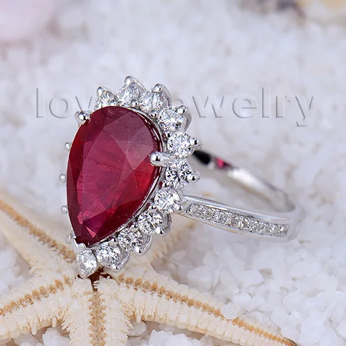 Unique Fashion Jewelry Rings,Pear Shaped Solid 14Kt White Gold Diamond Ruby Ring 8x12mm-WU080