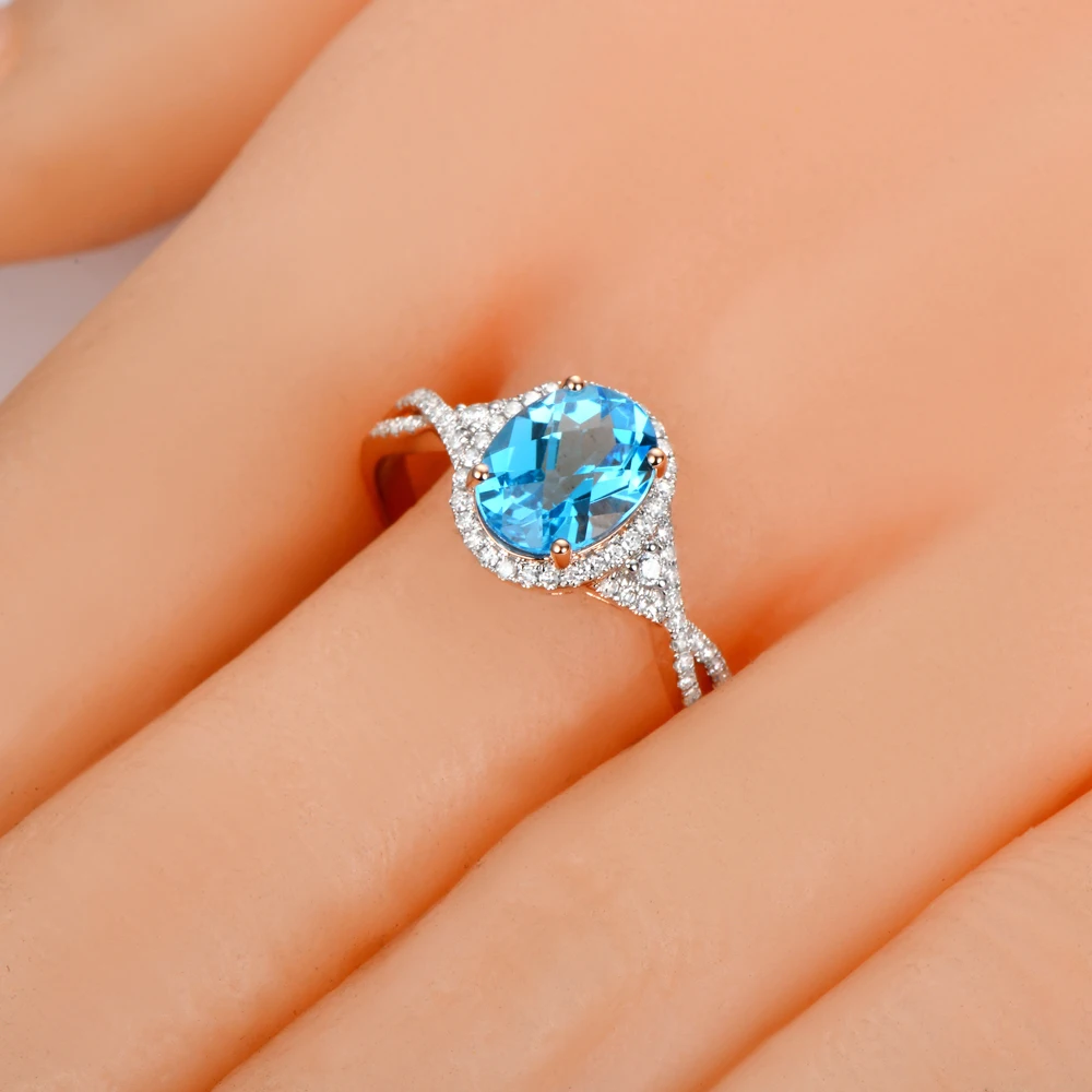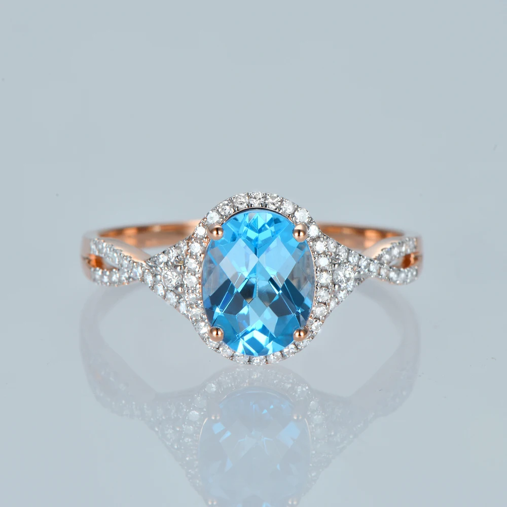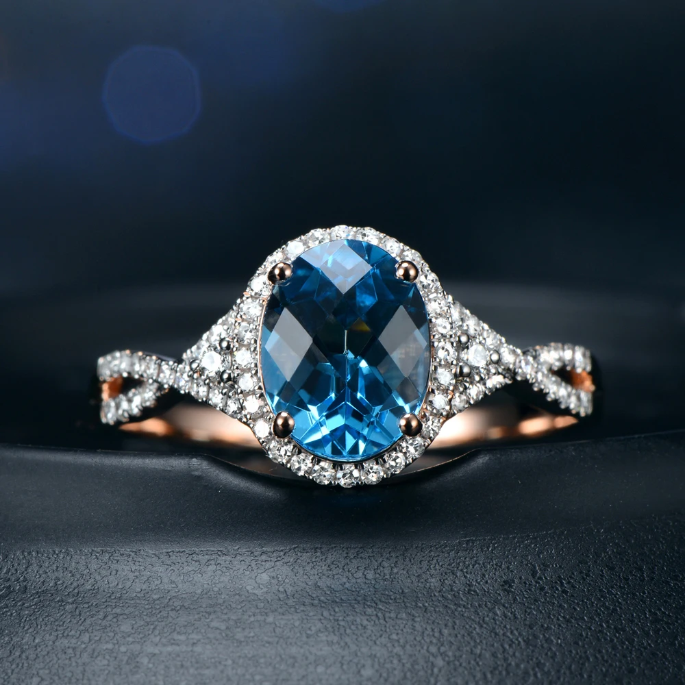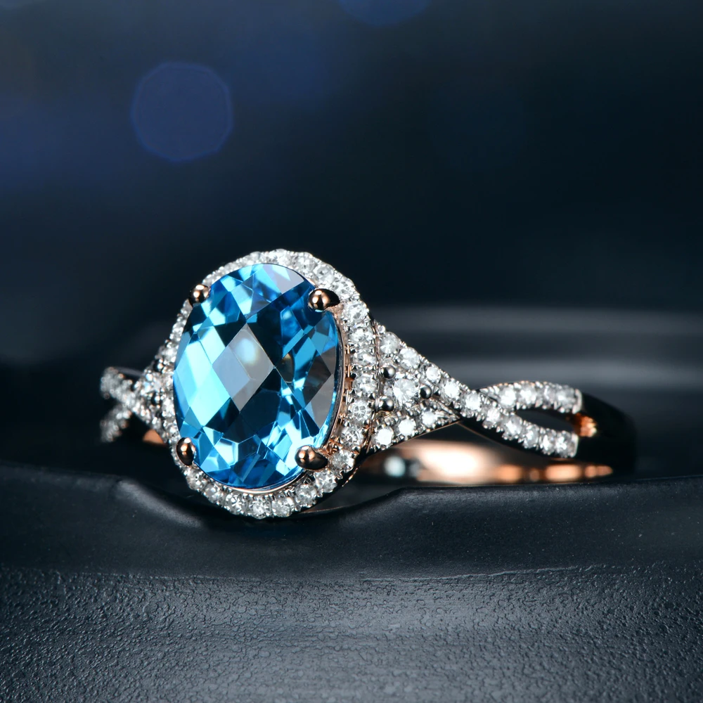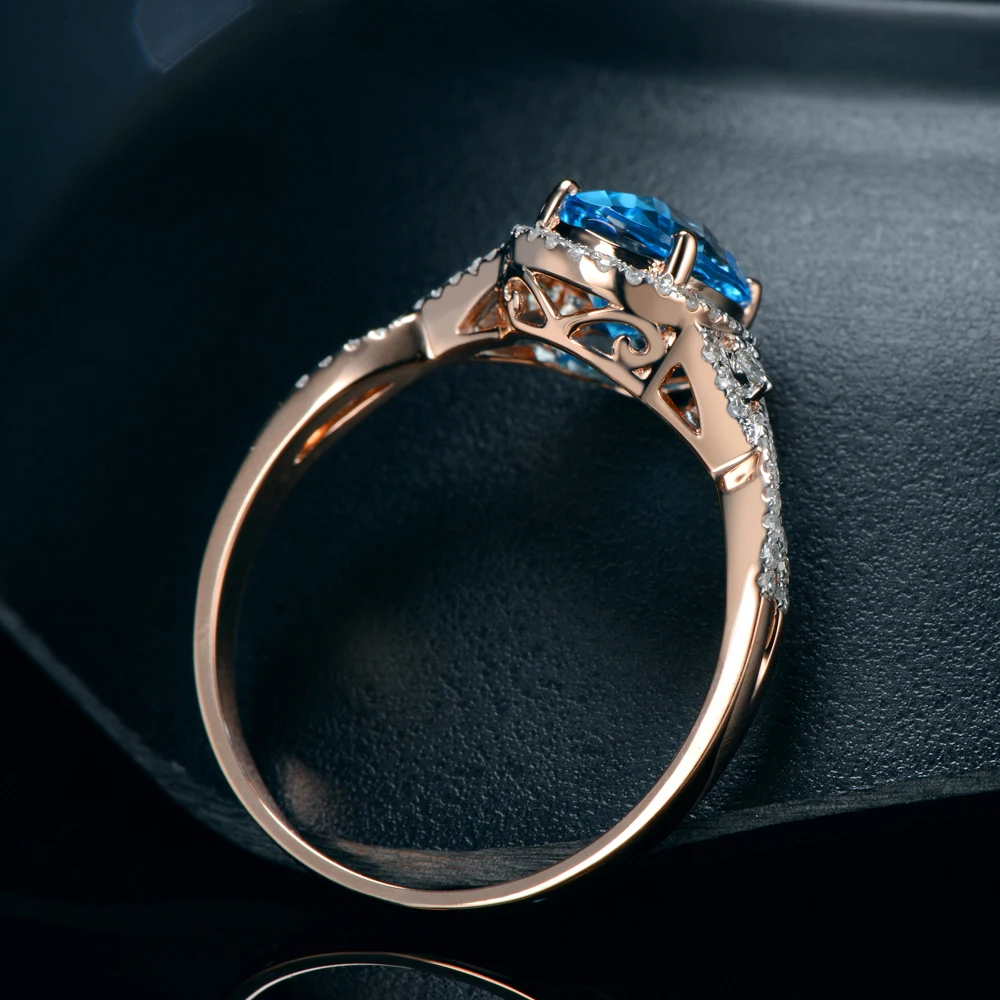 jewelry 2.01ct Natural Topaz and 0.28ct Diamonds 14K Rose Gold Engagement Ring