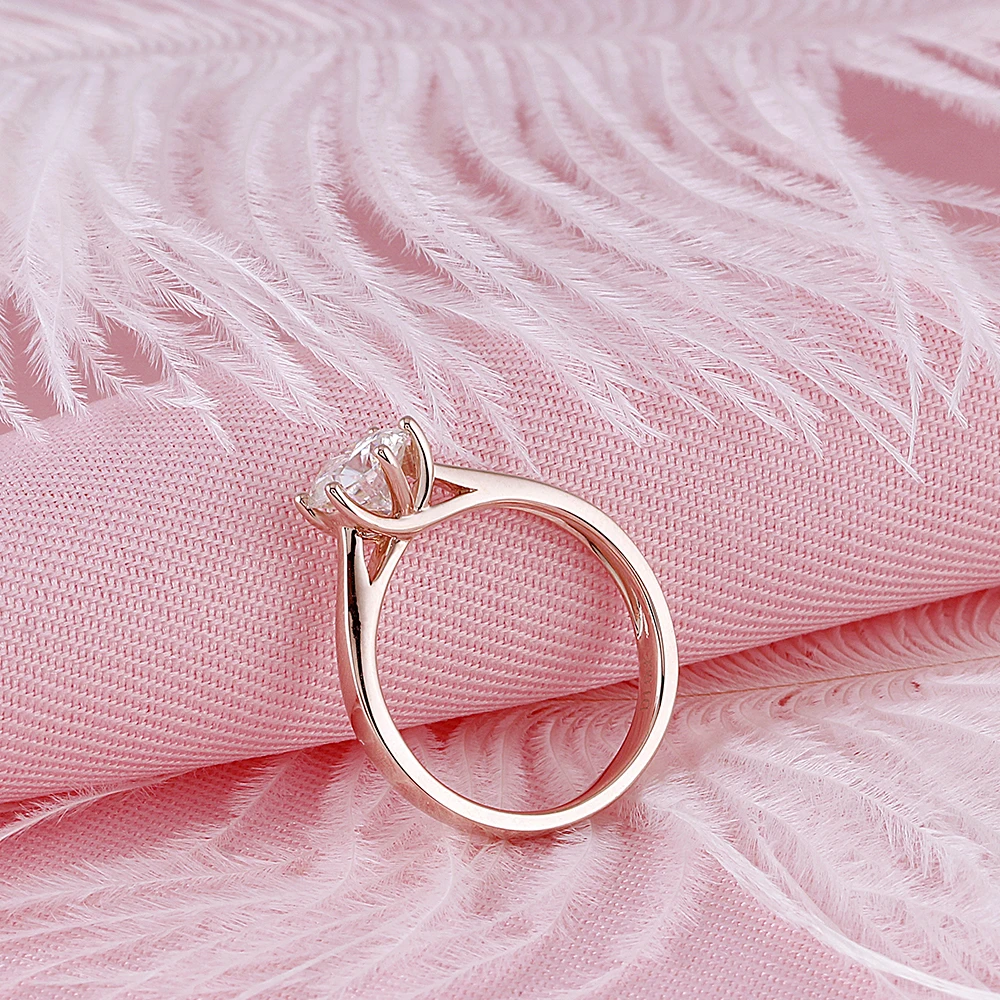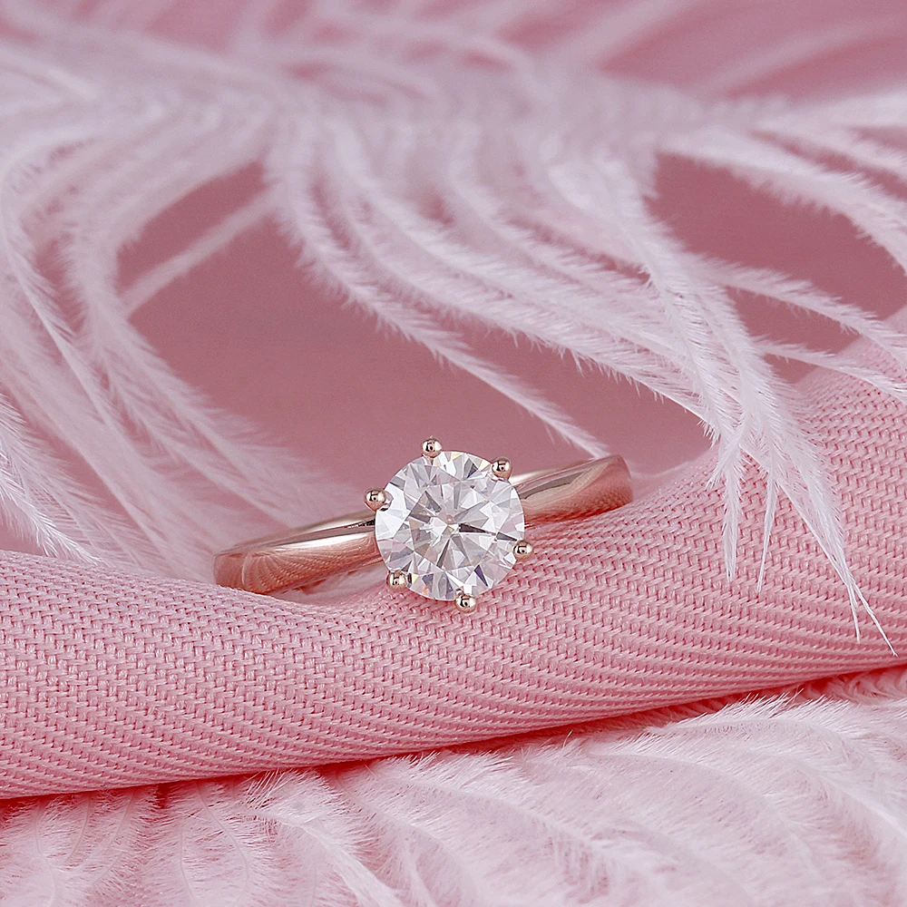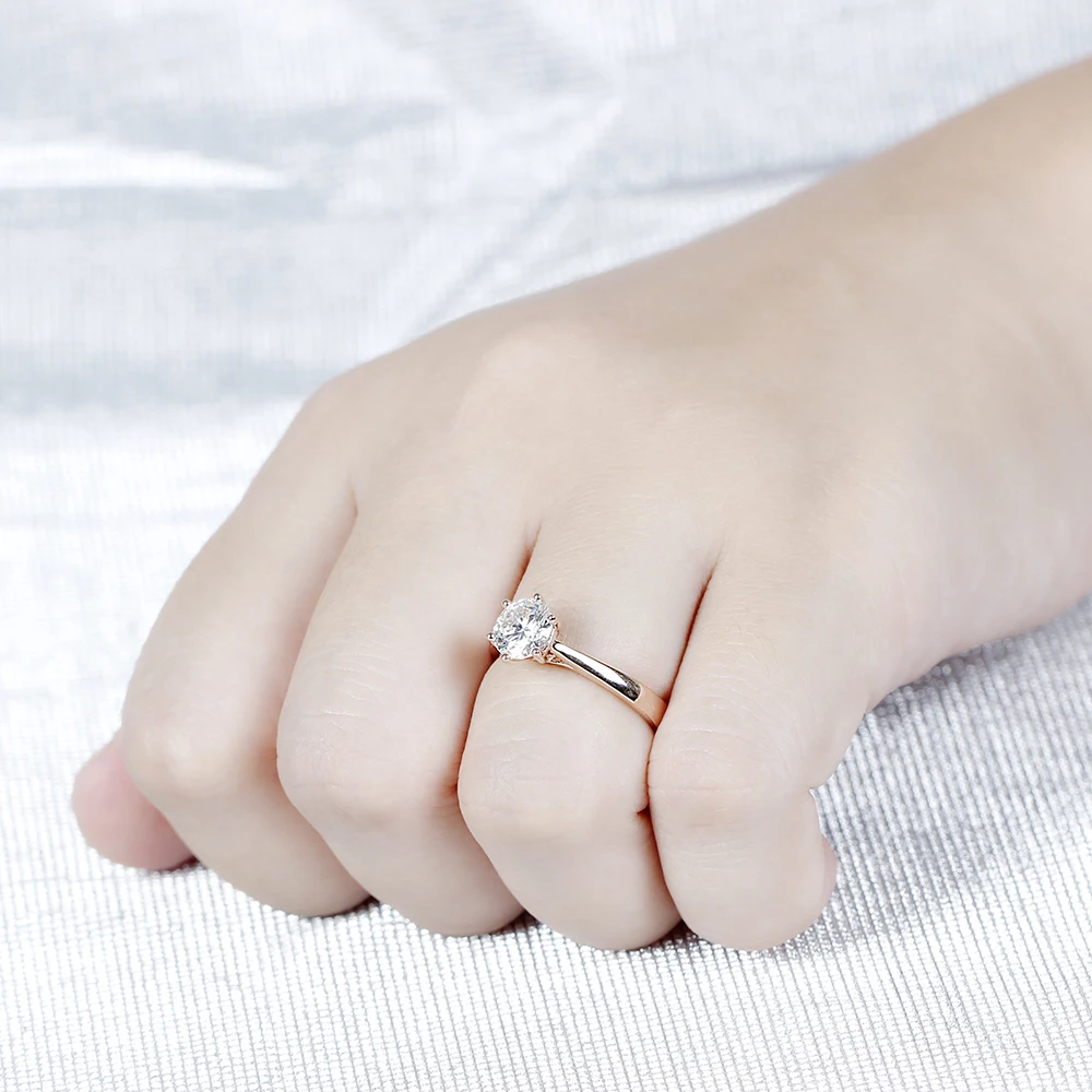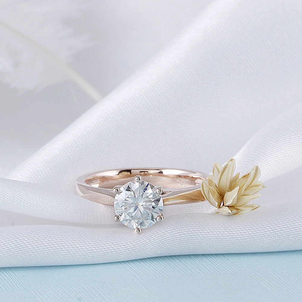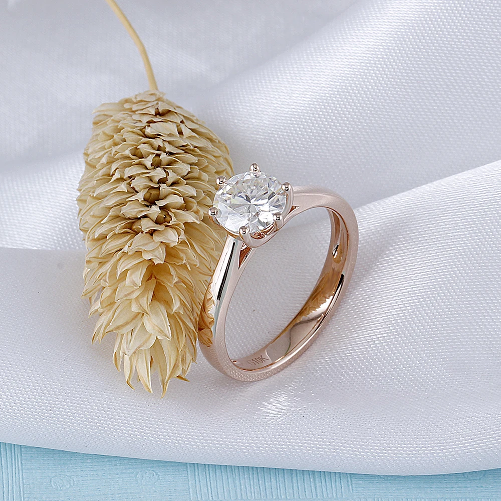 Center 1ct Rose Gold Engagement Ring Women 10K Rose Gold 1 Carat 6.5MM F Color Moissanite Diamond Ring for Wediing