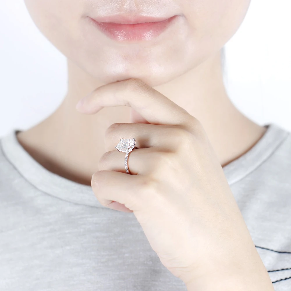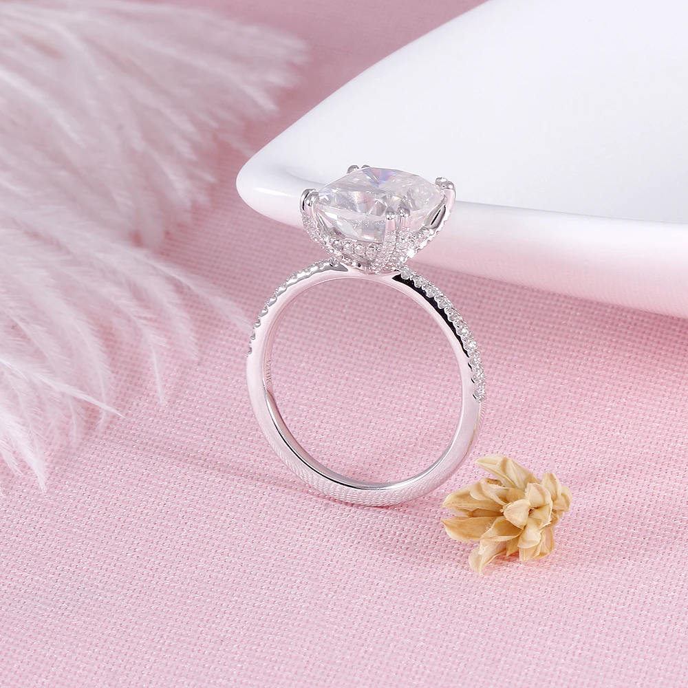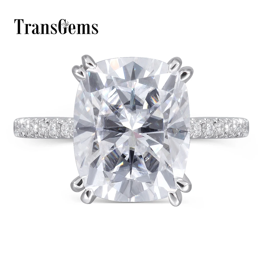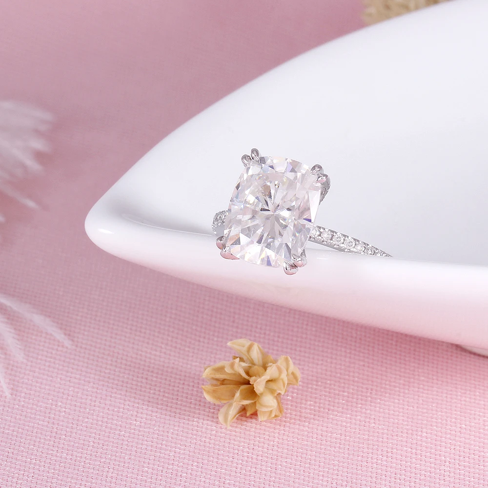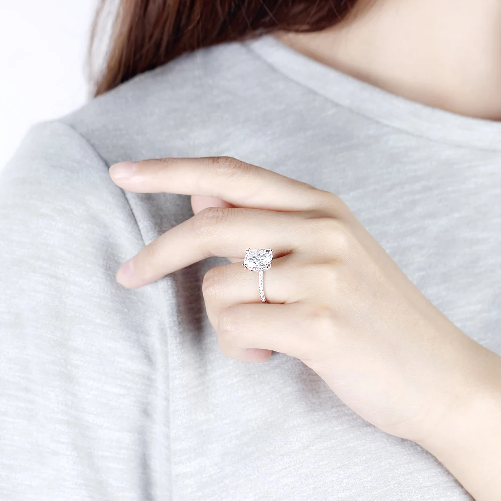 Moissanite Ring Center 4ct 8X10MM FG Color Moissanite Diamond 14K 585 White Gold Engagement Ring for Women Gift