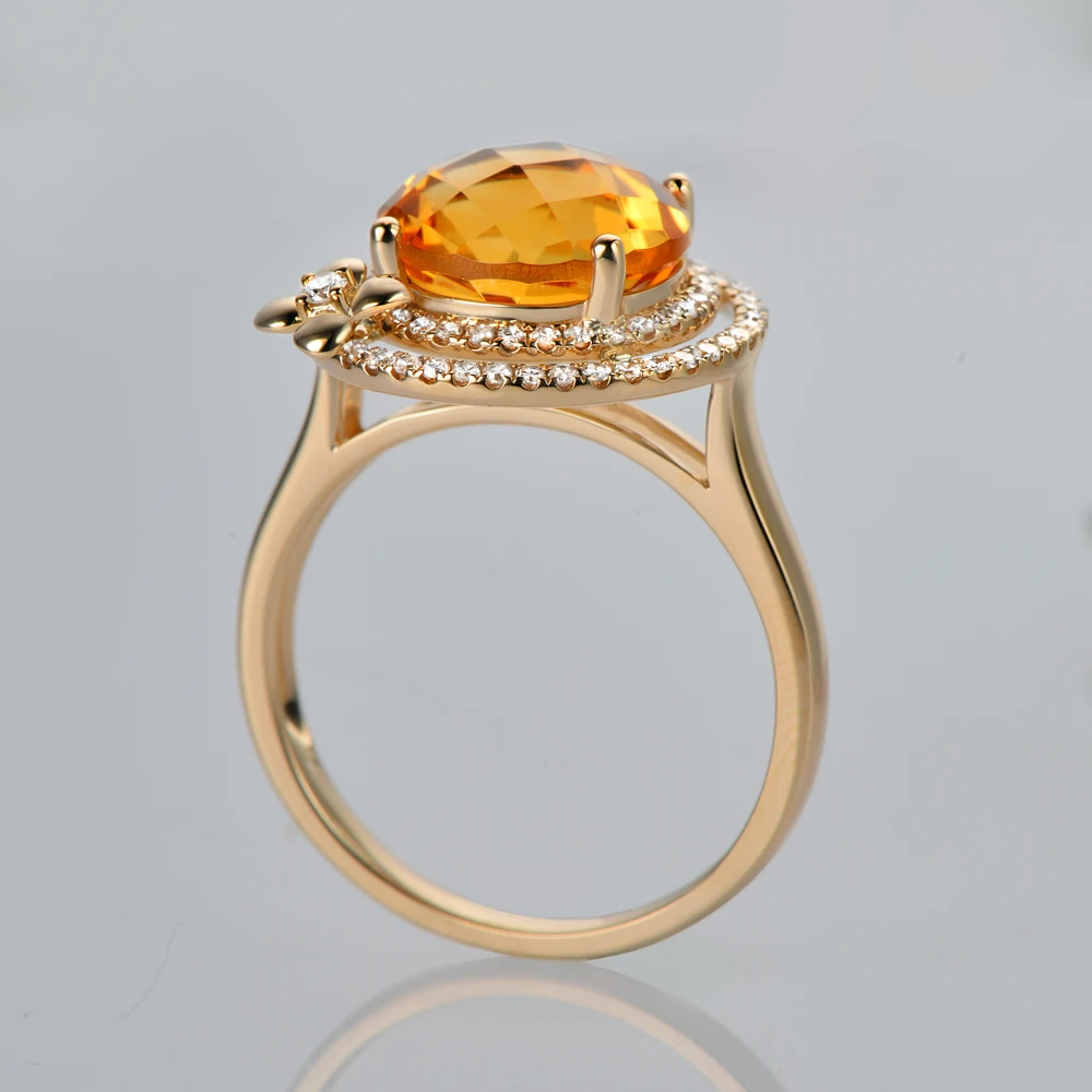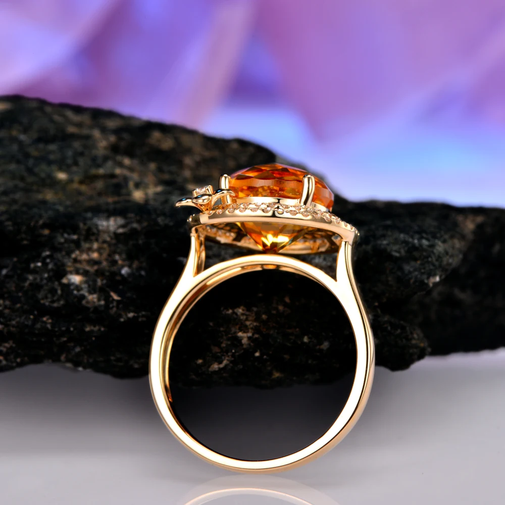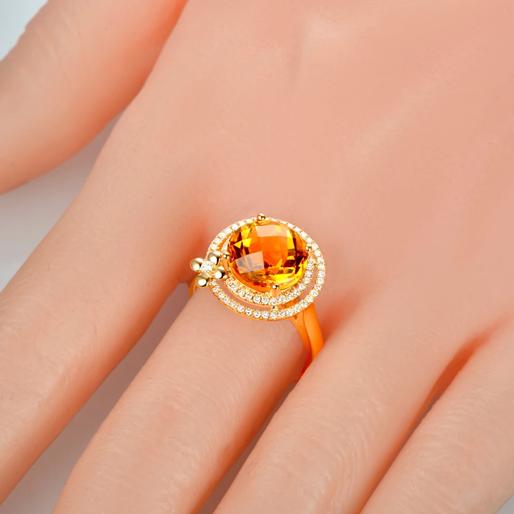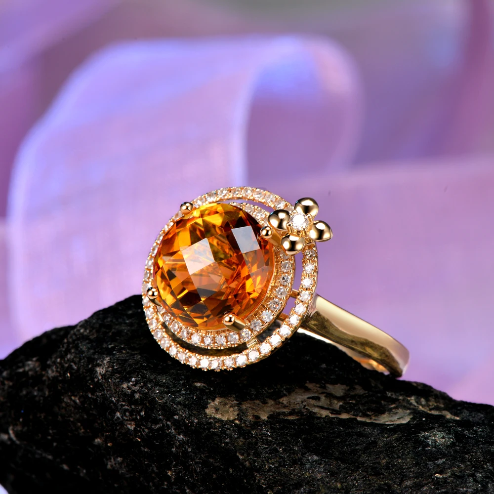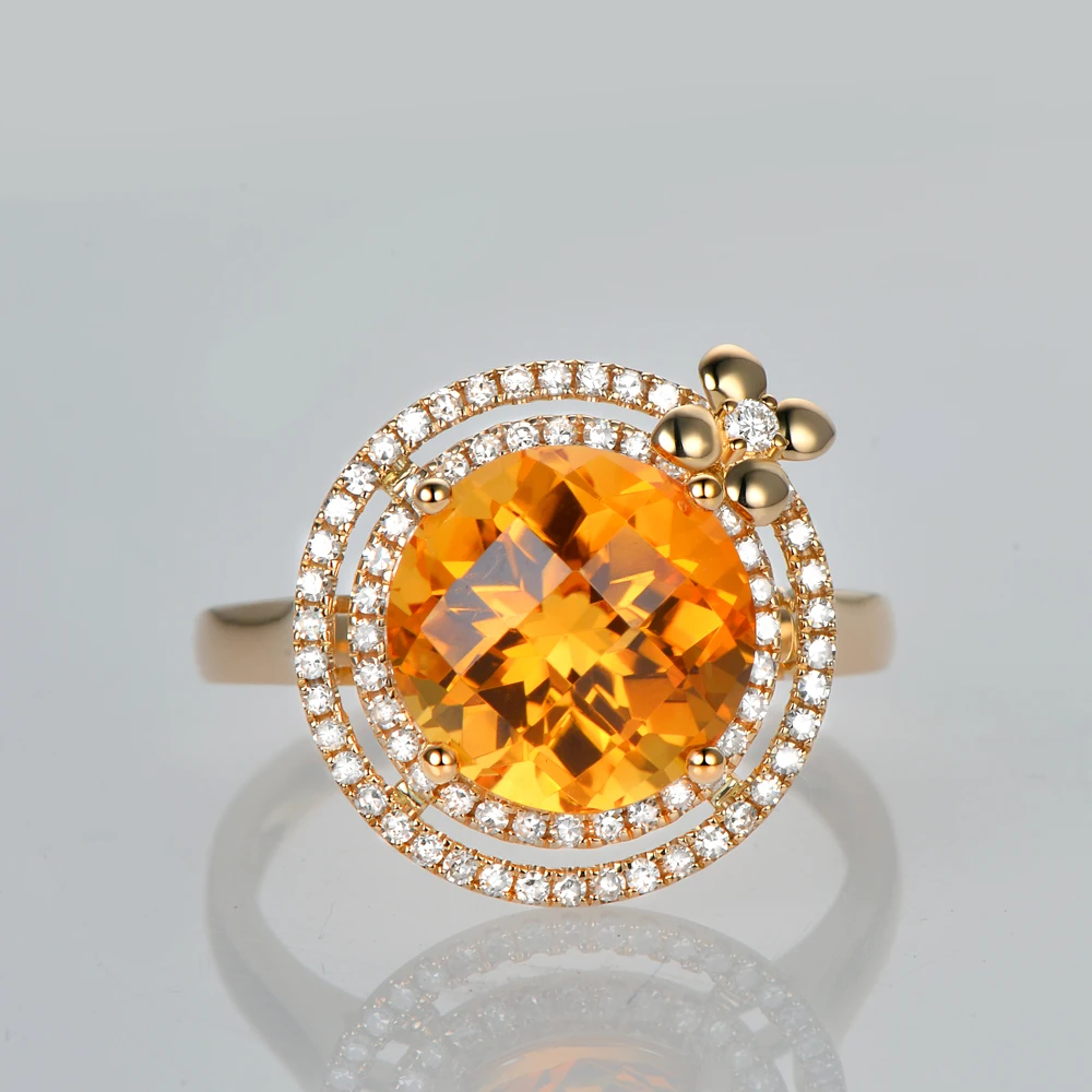Unplated 14k Yellow Gold 4.06ct Round Flawless IF Citrine Pave Set Diamond Engagement Ring