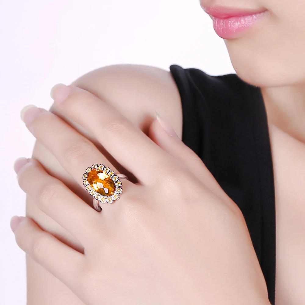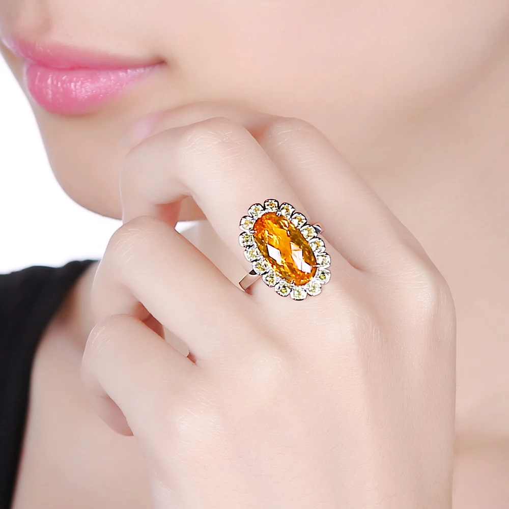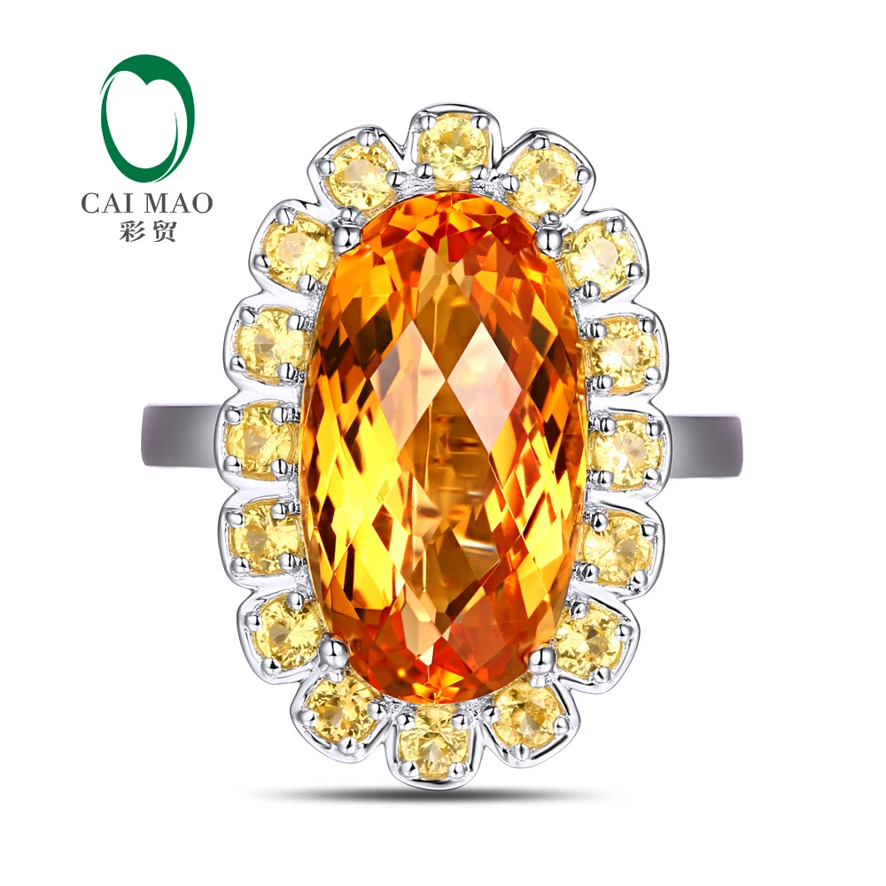 Unplated 18k White Gold 6.55ct Oval Flawless IF Citrine 0.82ct Yellow Sapphires Engagement Ring