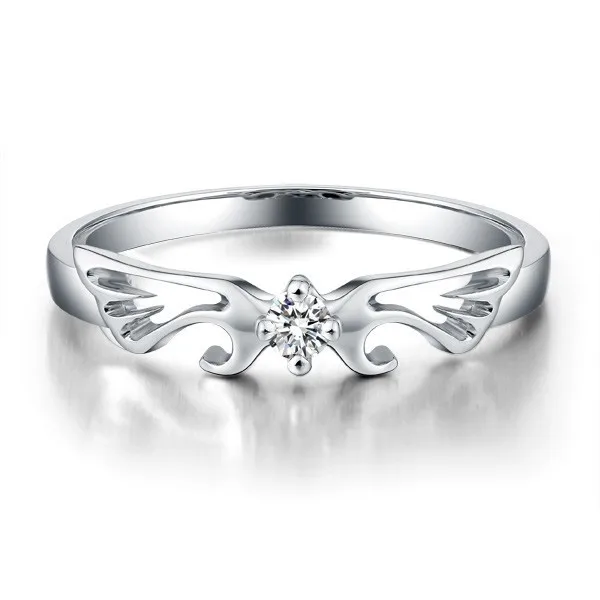 Women Ring Diamond Angel Wings 18K Solid White Gold Genuine Natural Diamond 0.06CT SI/H Wedding Band Engagment Ring