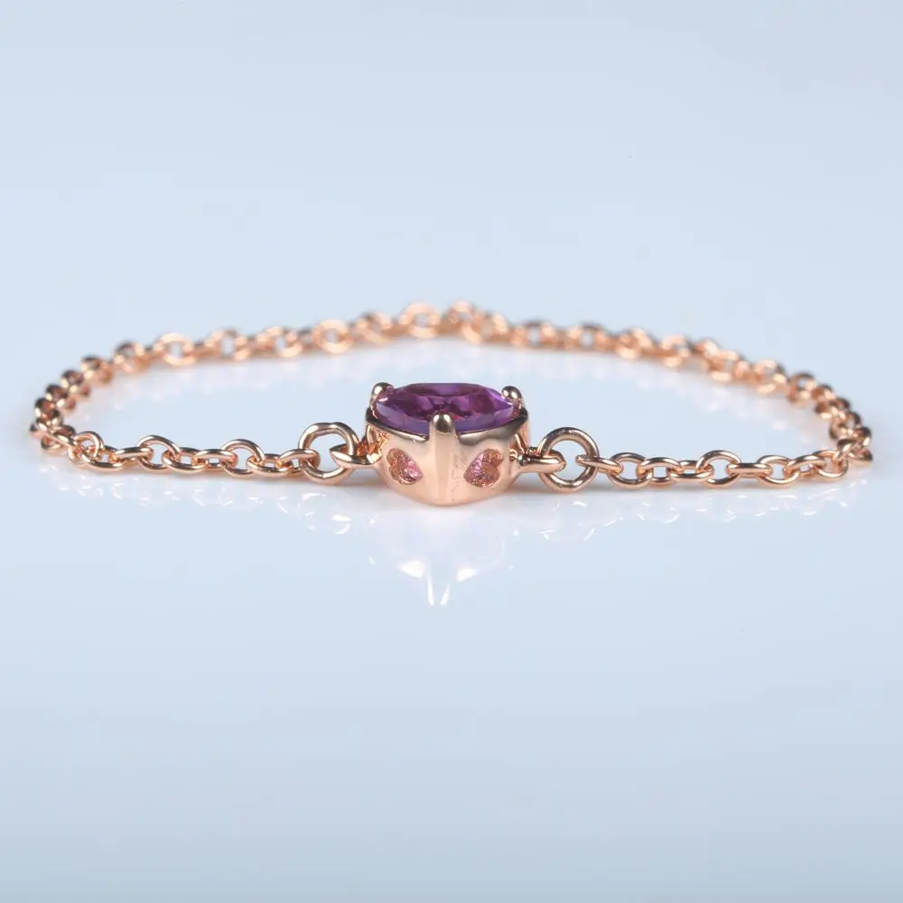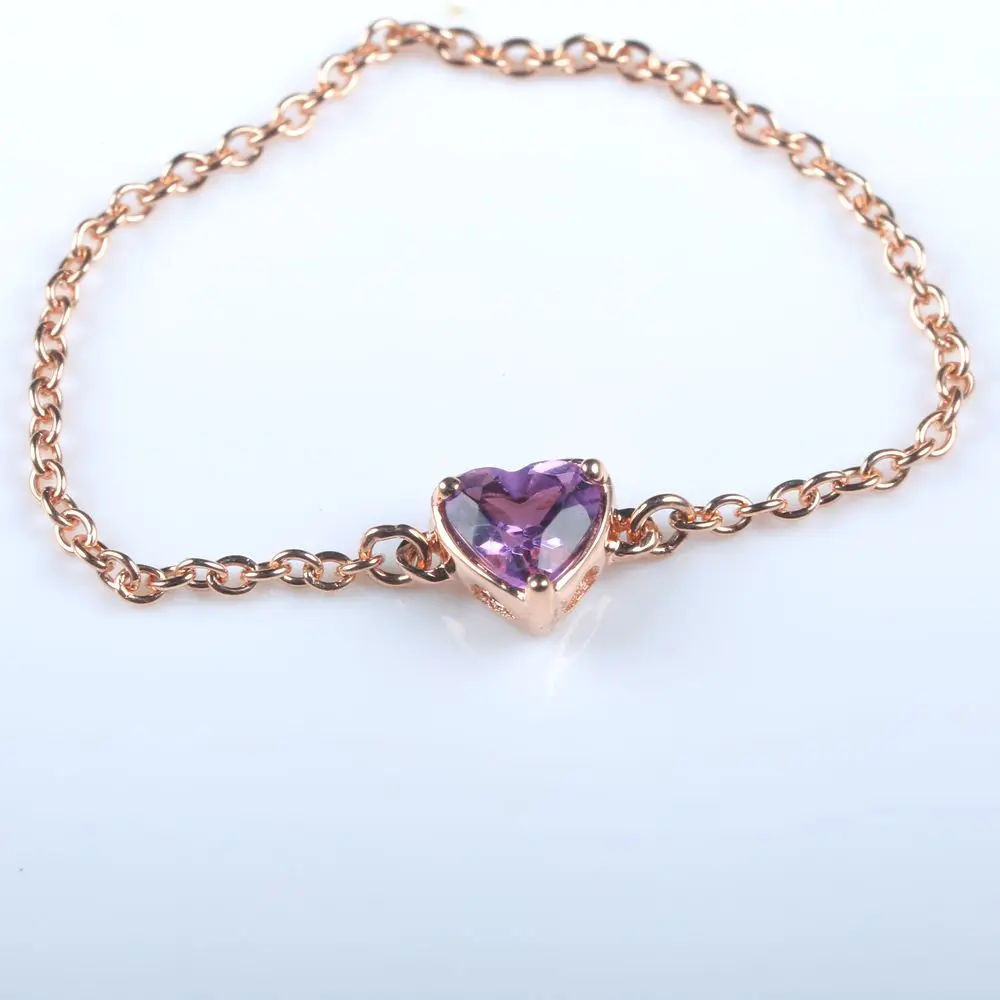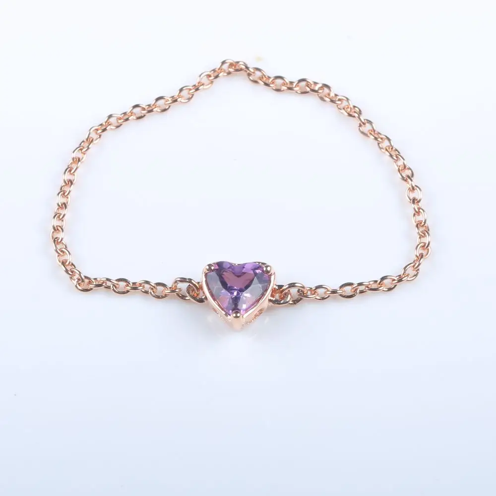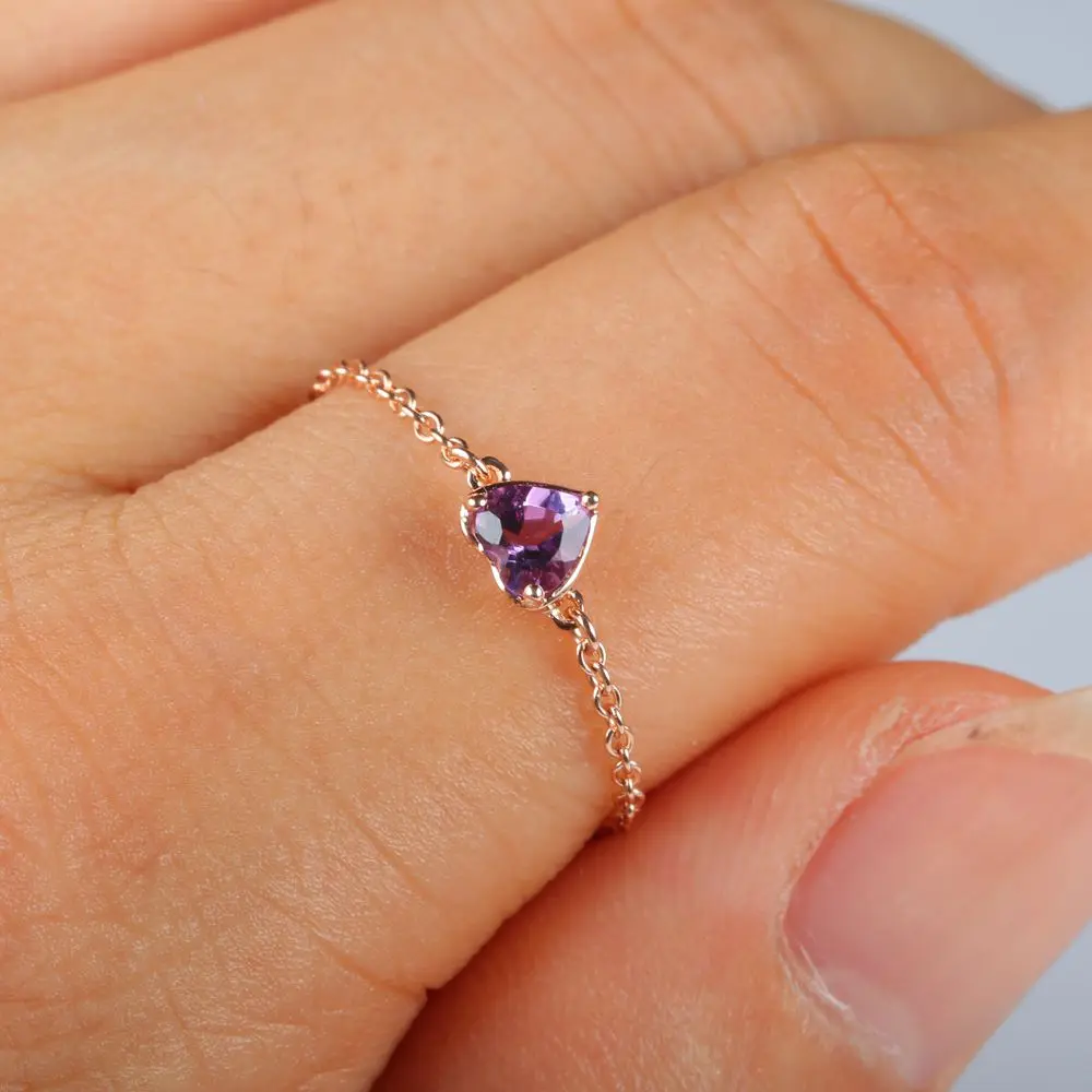 Women Solid 18k Rose Gold Heart Cut Natural Amethyst Engagement Chain Ring Unique Fine Jewelry