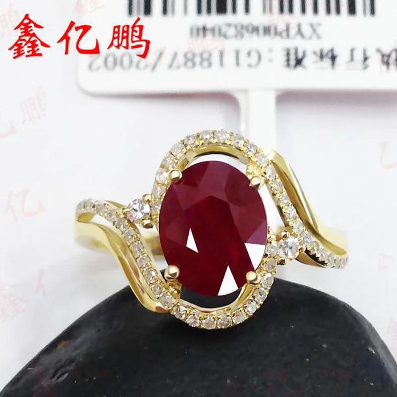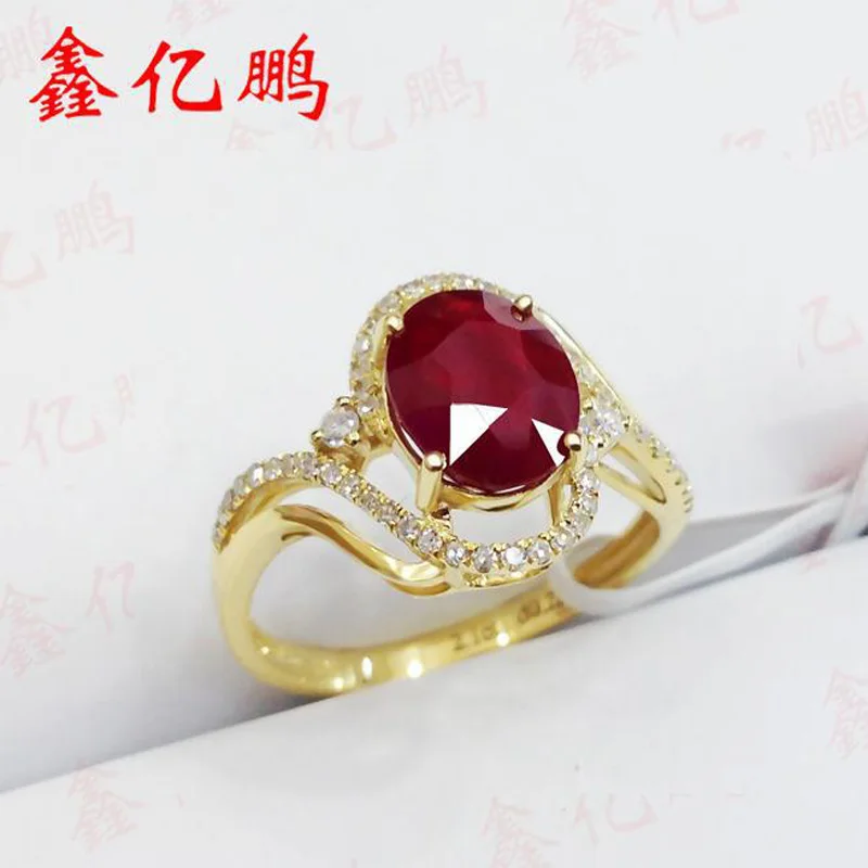 Xin yi peng 18 k yellow gold inlaid 2.1 carat natural ruby ring, woman ring with diamonds, engagement to marry