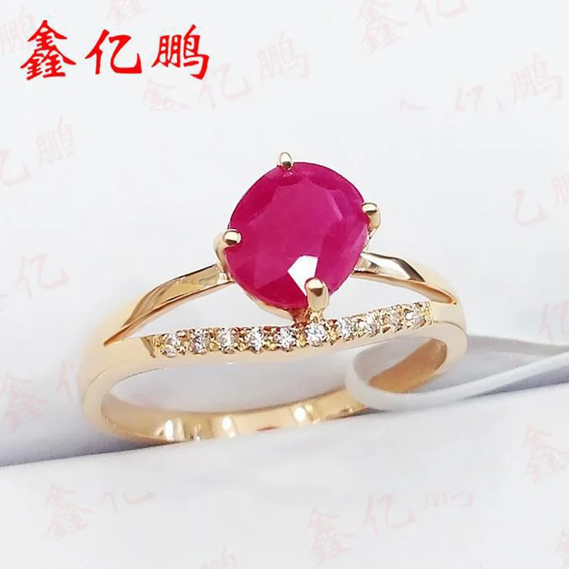 Xin yi peng 18 k yellow gold inlaid natural ruby ring, the woman ring, contracted and easy