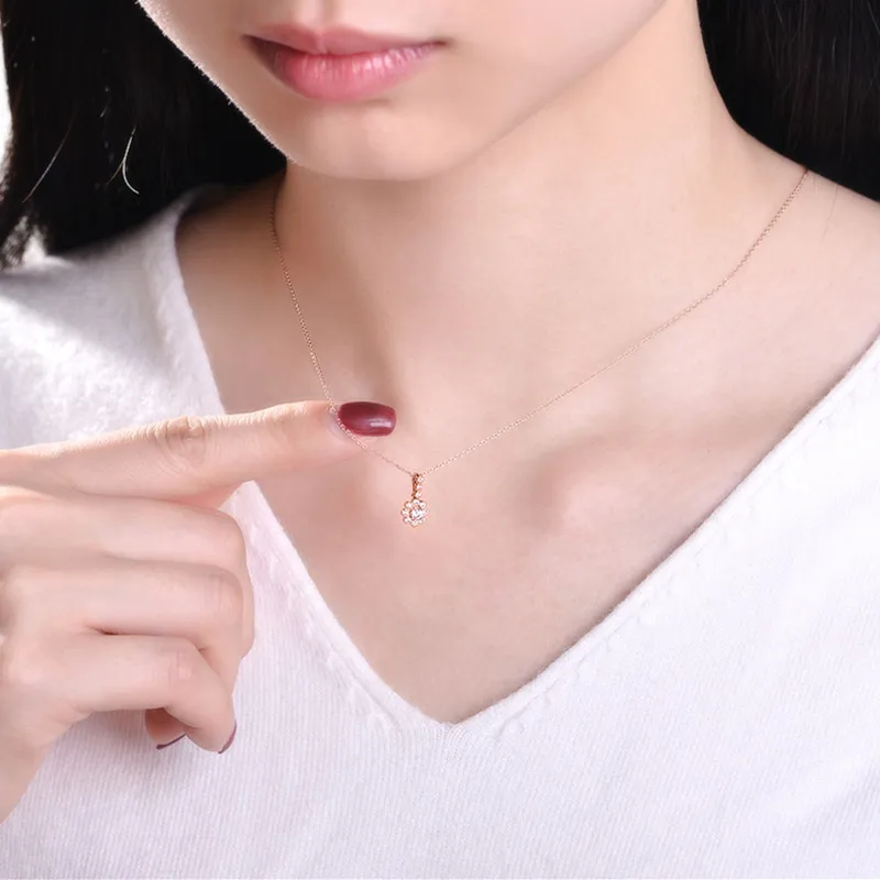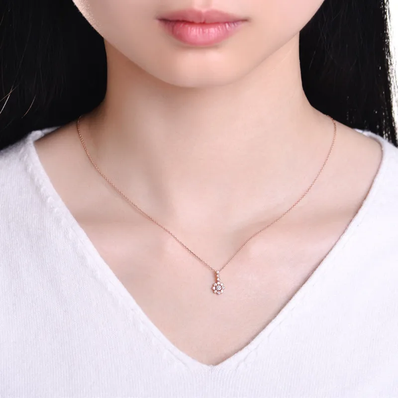 Fine Jewelry Necklace Real Total 0.18 CT Diamond 18K Rose Gold (Au750) Wedding or Gift Necklace D80108T