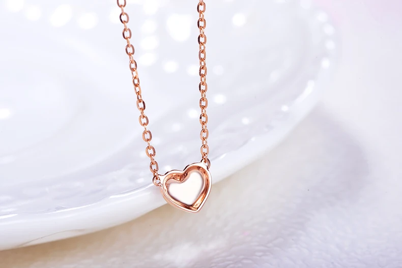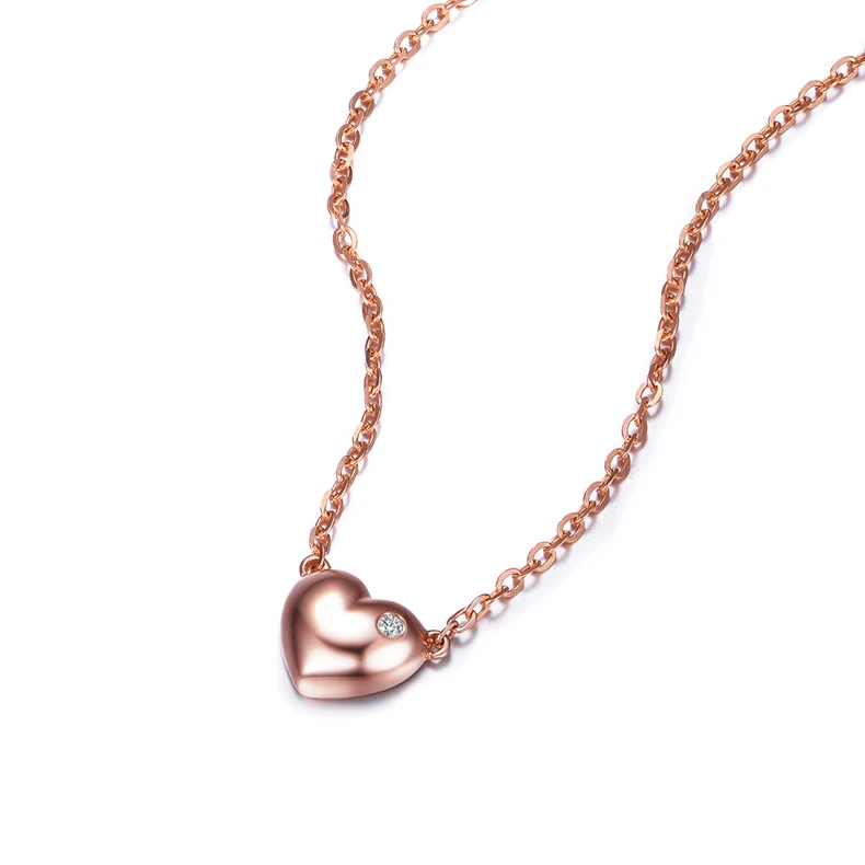 Heart Shape Real 18K Rose Gold (AU750) Genuine 0.01 CT Certified H/SI Diamond Women Necklace X00209
