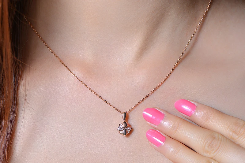 choker New Arrival Heart Shape 0.01 CT Certified H / SI Diamond Pendant 18K rose Gold (Au750) 925 Silver Chain JBD00367