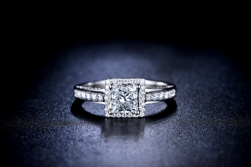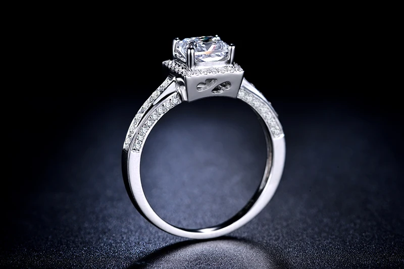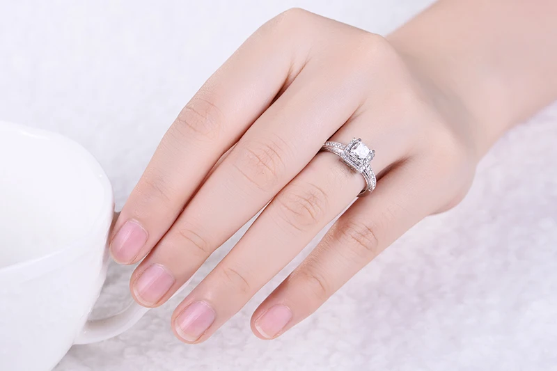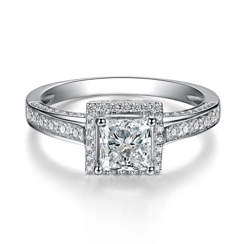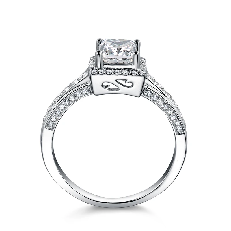 PETITE CATHEDRAL PAVE HALO 0.9 CT NATURAL H / VVS PRINCES CUT 18K WHITE GOLD DIAMOND RING W03668