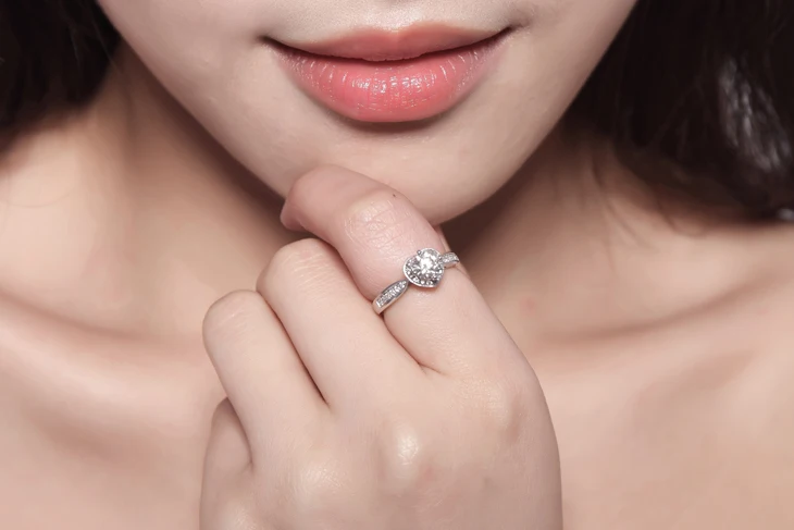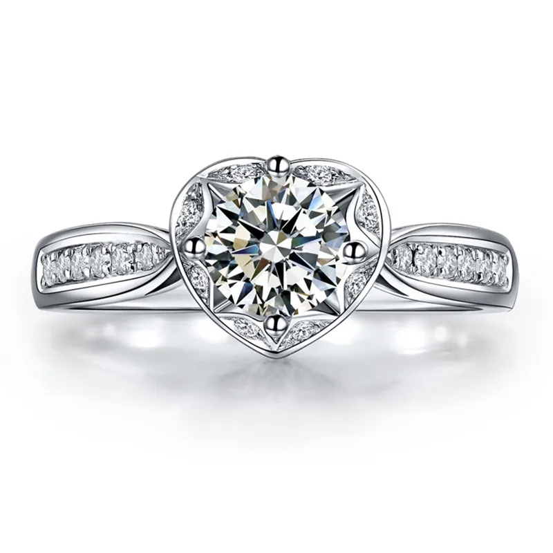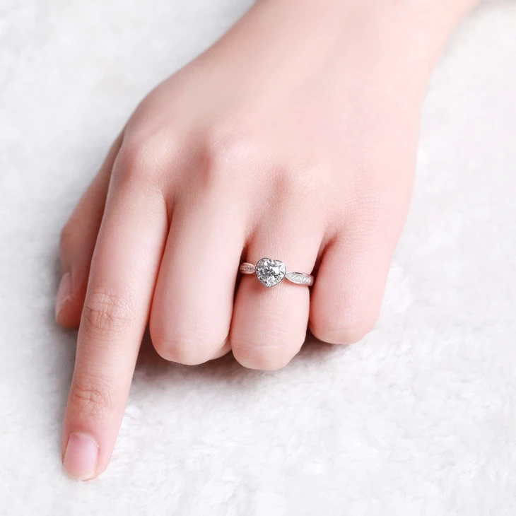 REAL 18K WHITE GOLD GENUINE 0.28 CT CERTIFIED DIAMOND F-G/SI DIAMOND ENGAGEMENT RAMANTIC HEART SHAPE RING W05264
