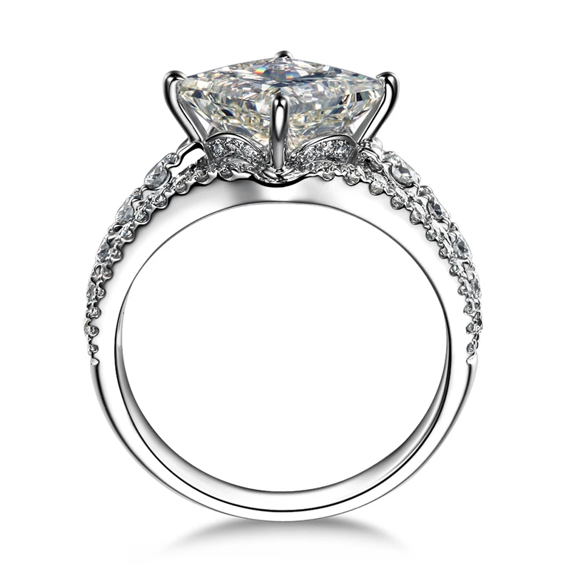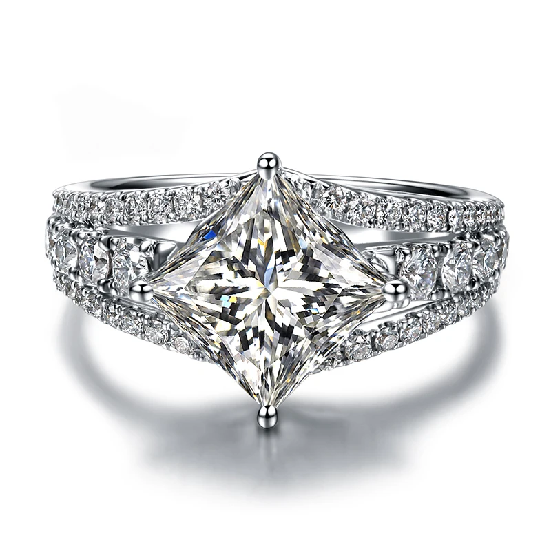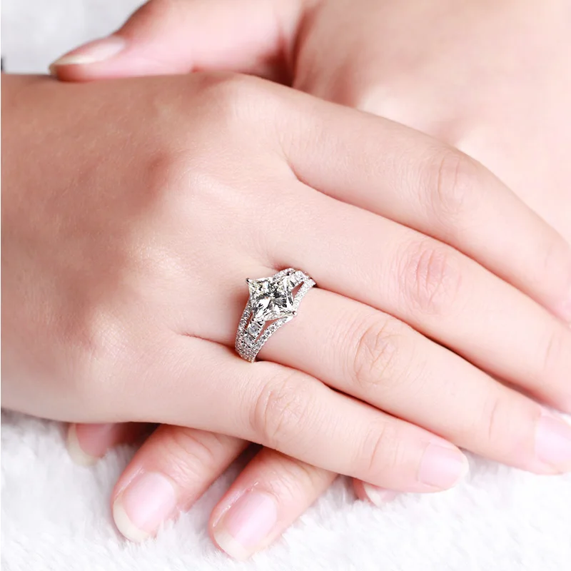 Side Stone Split Shank Real 1.6 CT Natural F-G / VS Princess Cut Diamond Engagement Ring 18K White Gold W03761