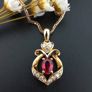 Rose in My Heart 0.9CT Garnet Womenly Necklace with 18K Yellow Gold Elegant Design