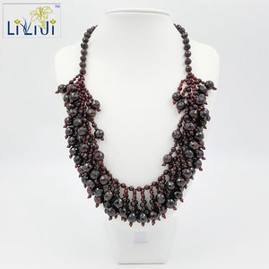 Natural red garnet Necklace natural gemstone Pendant Necklace S925 silver Fashion Luxury flower clusters women wedding Jewelry