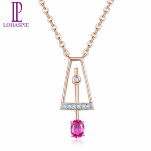 Lohaspie Solid 18K Natural Gemstone Ruby & Diamonds Rose Gold Pendant & Necklace Fine Diamond-Jewelry For Women's Gift 18