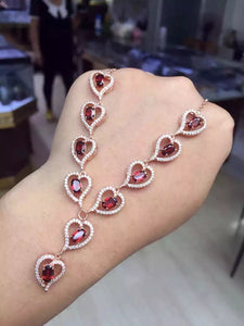 Natural red garnet Necklace Natural gemstone Pendant Necklace 925 sliver women Luxury romantic Heart Peach women wedding Jewelry