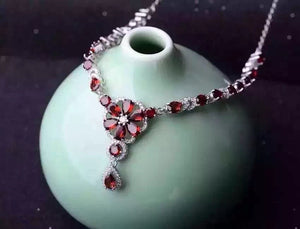 Natural red garnet Necklace natural gemstone Pendant Necklace S925 Sterling silver trendy elegant Flowers women party Jewelry