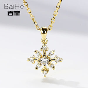 BAIHE Solid 14K Yellow Gold 0.10ct Certified H/SI Genuine Natural Diamonds Engagement Women Trendy Fine Jewelry gift Necklaces