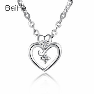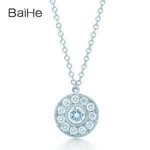 BAIHE Solid 18K White Gold 0.2ct Certified H/SI Round CUT 100% Genuine Natural Diamonds Women Engagement Fine Jewelry Necklaces