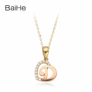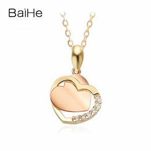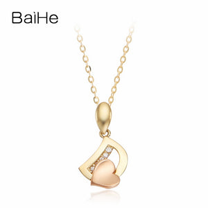 BAIHE Solid 18K Yellow & Rose Gold 0.06CT Certified 100% Genuine Natural Diamonds Women Wedding Cute/Romantic Jewelry Necklaces