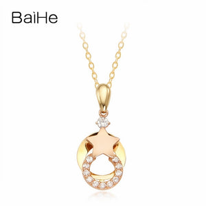 BAIHE Solid 18K Yellow Gold Certified 0.10ct Round cut 100% Genuine Natural Diamonds Anniversary Cute/Romantic Jewelry Necklaces