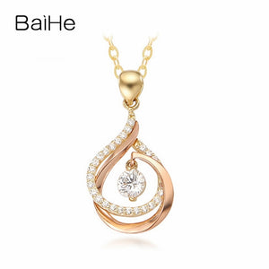 BAIHE Solid 18K Yellow & Rose Gold 0.29ct Certified H/SI Round 100% Genuine Natural Diamond Women Wedding Fine Jewelry Necklaces