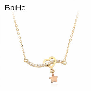 BAIHE Solid 18K Yellow & Rose Gold Certified 0.06ct Round Genuine Natural Diamonds Engagement Cute/Romantic Jewelry Necklaces