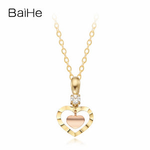 BAIHE Solid 18K Yellow & Rose Gold Certified 0.05ct Round 100% Genuine Natural Diamonds Engagement Cute/Romantic Gift Necklaces