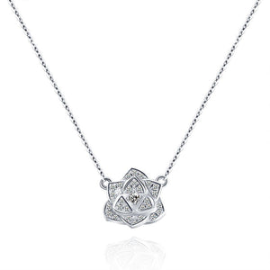 18K Gold Rose Diamond Pendant White Gold Diamond Necklace Chainbone Chain Rose gold Necklace Set