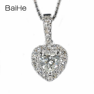 BAIHE Solid 18K White Gold 0.20ct Certified Heart Cut 100% Genuine Natural Diamond Party Trendy Fine Jewelry Gift Necklaces