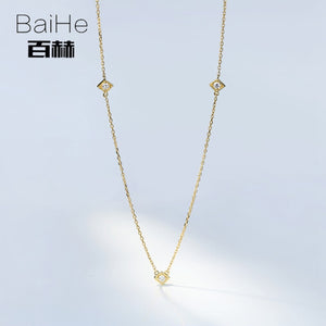 BAIHE Solid 14K Yellow Gold 0.09CT Certified H/SI Genuine Natural Diamonds Round CUT Women Trendy Fine Jewelry Elegant Necklaces