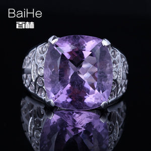 BAIHE Sterling Silver 925 8.5ct Certified Cushion Flawless Purple Genuine Amethyst Wedding Women Office/career Fine Jewelry Ring