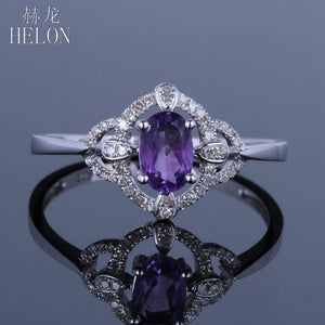 Solid 14K White Gold Oval Cut 4x6mm 100% Genuine Natural Amethyst Ring Engagement Wedding Real Diamond Ring Trendy Jewelry