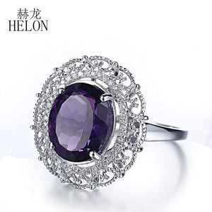 Oval Flawless Amethyst Ring Solid 10K White Gold 100% Genuine Natural Diamonds Ring For Women Wedding Party Gift Jewelry