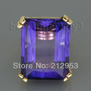 Lovely Amethyst Ring Vintage Emerald Cut 17x20mm 18kt Yellow Gold For Wife Gift SR322A