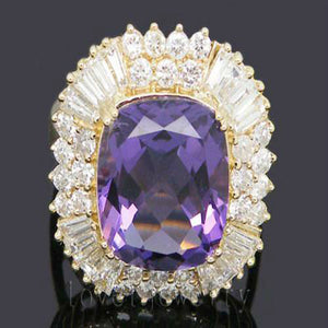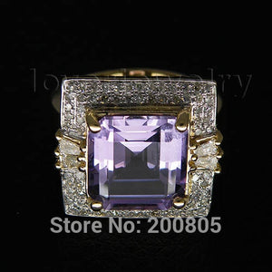 Vintage Fine Jewelry Women Rings Cushion 14kt Gold 9.80Ct Natural Diamond Purple Amethyst Wedding Ring SR0002