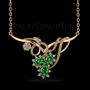 Queen Style NECKLACE WOMAN FASHION Emerald Necklace Angel With Natural Diamond 18Kt Yellow Gold WP052