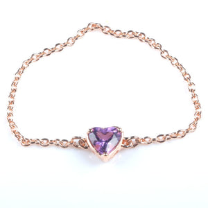 Women Solid 18k Rose Gold Heart Cut Natural Amethyst Engagement Chain Ring Unique Fine Jewelry