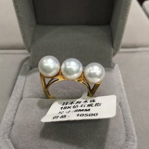 3 pearls Natural Sea Water Pearl Ring 18K Gold Japan Akoya Pearl Ring Balance Fine Women Jewery Anniversary jewelry