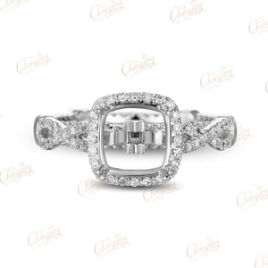 7.5x7.5mm Cushion Cut Natural Diamond Solid 14K Two Tone Gold Semi Mount Ring